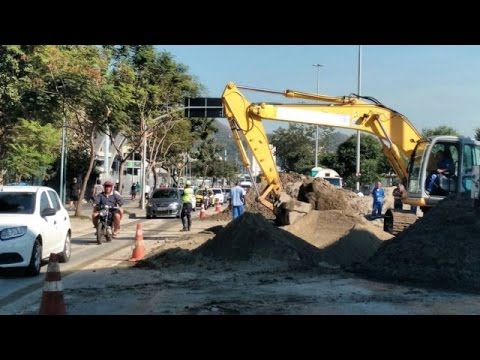 A 12 dias da cerimônia de abertura da Olimpíada, no estádio do Maracanã, motoristas que passam pela Radial Oeste enfrentam congestionamento por conta de uma cratera aberta a 100 metros, próximo ao Museu do Índio. O asfalto cedeu na noite de sábado. Três das quatro faixas no sentido Centro estão interditada e a via virou um canteiro de obras. A Cedae está no local fazendo o reparo. Não há previsão para conclusão dos trabalhos.